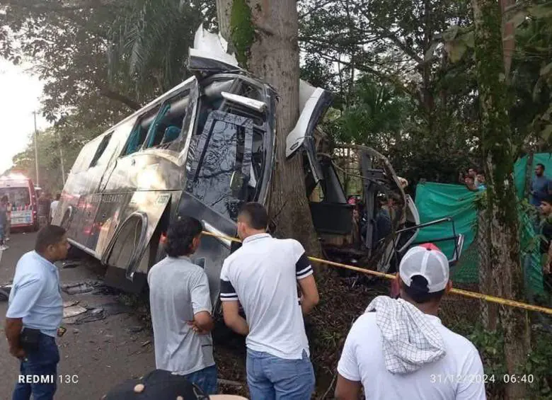 Segun las primeras hipotesis el conductor del bus perdio el control del mismo y se salio de la via chocando contra un arbol.