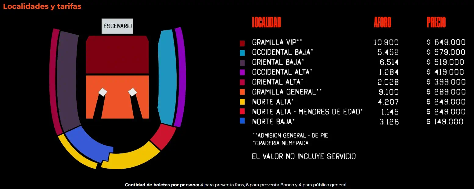 - Venta General: Comienza el 19 de diciembre a las 10:00 a.m., con un límite de compra de 4 boletas por transacción.